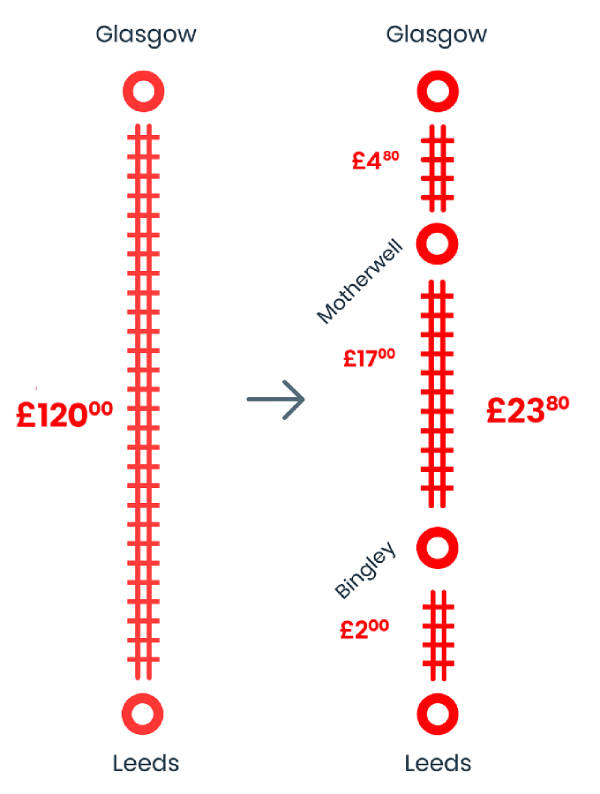 That’s the essence of split ticketing instead of paying a single high fare, you legally split your tickets at certain points along the journey and pay much less.